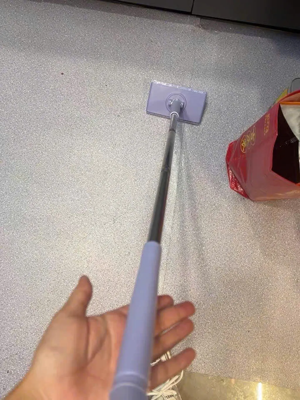 Gosto do design do clipe porque é mãos livres. Útil para limpar armários de cozinha altos. Gostava que o aparelho fosse maior.