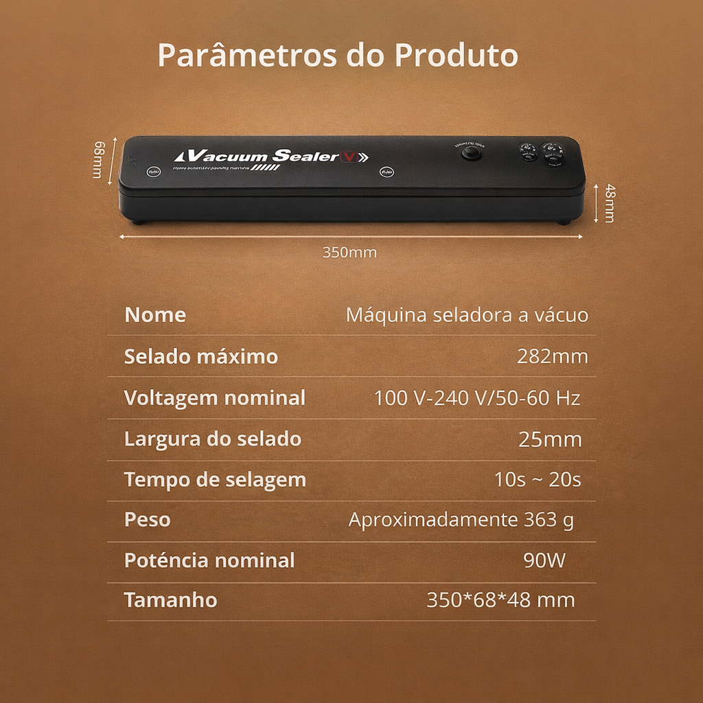 Seladora a Vácuo para Alimentos para a Conservação Prolongada de Alimentos — Inclui 100 Sacos a Vácuo Gratuitos