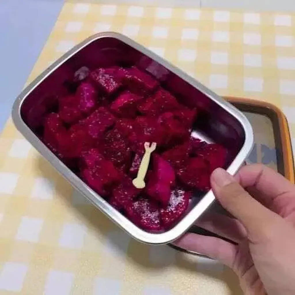 o efeito de vedação é especialmente bom,, mesmo cheia de água e virada de cabeça para baixo, não vaza. Puxe suavemente o meio para abrir a tampa. Pode ser usada tanto quente quanto fria, e também pode ir ao forno para cozinhar alimentos